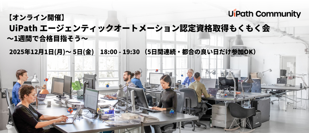 【オンライン開催】UiPath エージェンティックオートメーション認定資格のもくもく会 ~1週間で合格目指そう~