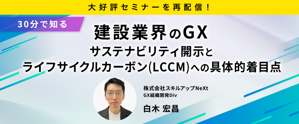 2/26(木)12:00-【大好評セミナーを再配信】【30分で知る】建設業界のGX:サステナビリティ開示とライフサイクルカーボン(LCCM)への具体的着目点