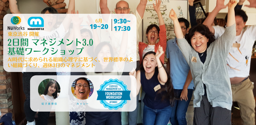 【対面】 2日間 マネジメント3.0 基礎ワークショップAI時代に求められる組織心理学に基づく、世界標準のよい組織づくり、週休3日のマネジメント(国際認定が取得可能)